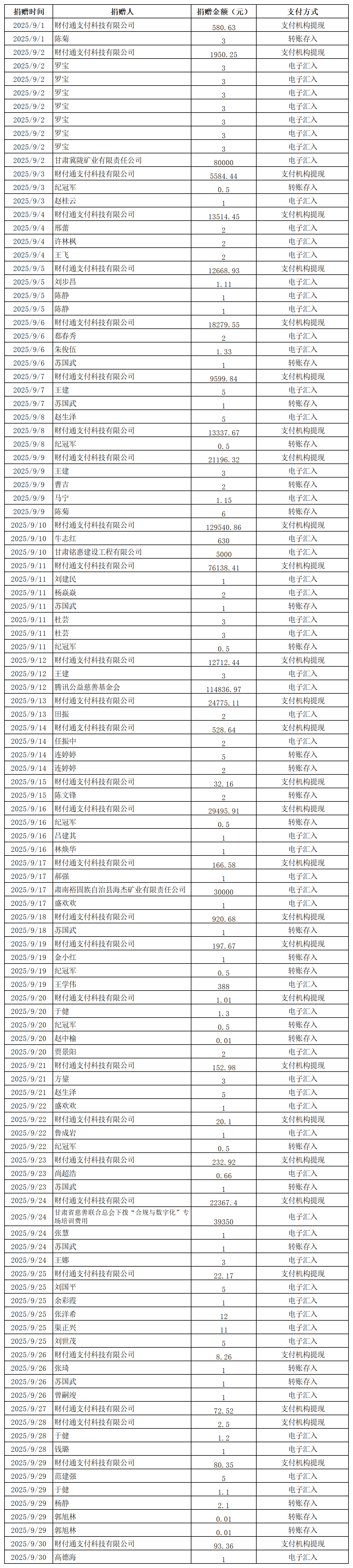 2025年張掖市慈善協(xié)會捐贈光榮榜(五)(銀行轉(zhuǎn)賬收入)